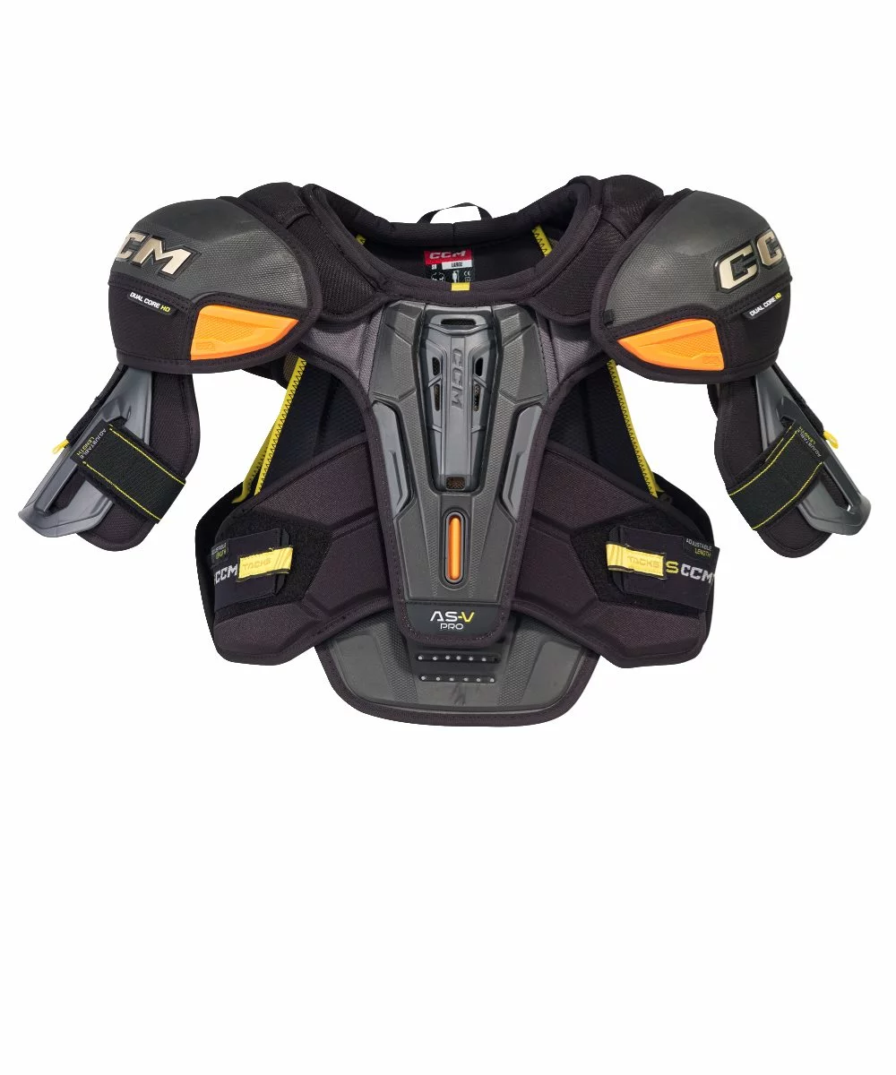 Nya kroppsskyddsserien Tacks AS-V Pro har utvecklats efter många timmar i labbet för att erbjuda maximalt skydd och förbättrad rörlighet. Detta resulterar i Anatomical Shield Design som skyddar dig och ger oslagbar passform. Axelskyddet följer dina rörelser på isen tack vare Flexmotion tekniken och är matchklara vid första användning. Axelskyddet gör sitt jobb, medan du gör ditt.