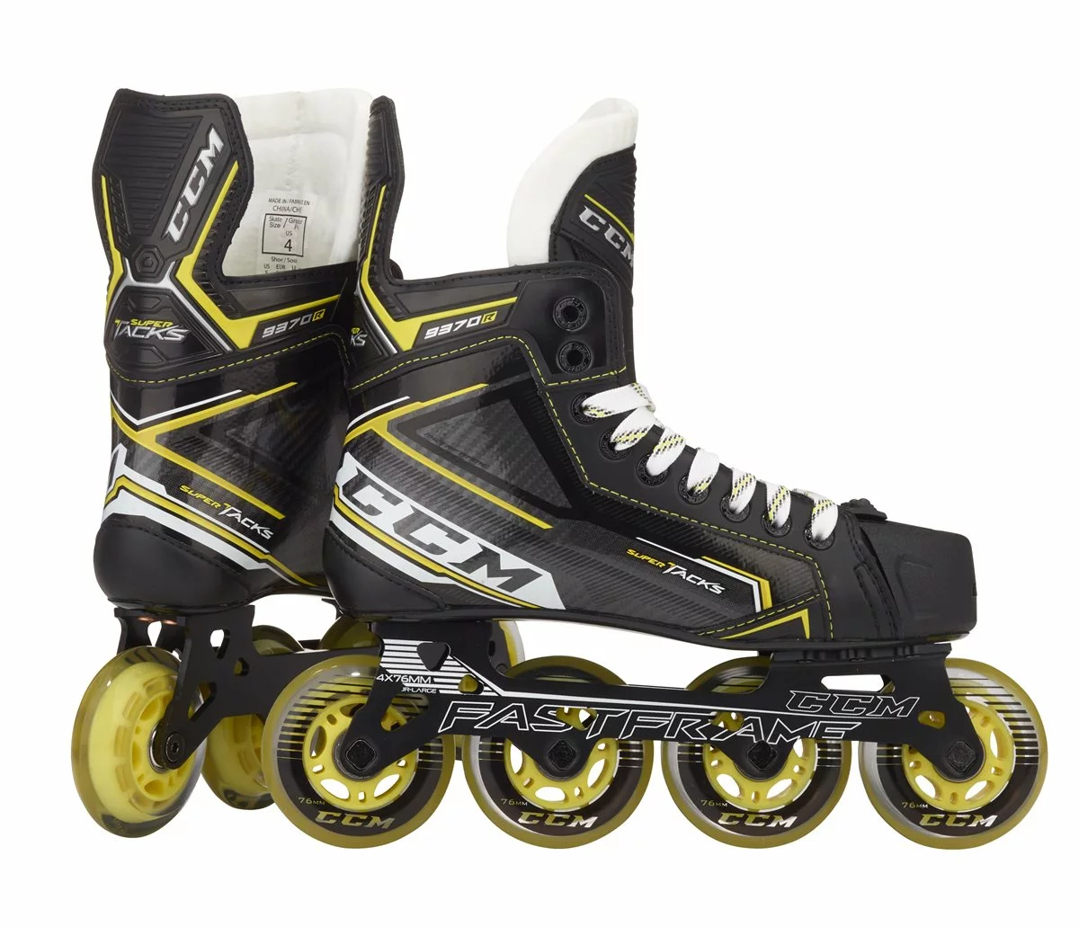 CCM Super Tacks 9370 inlines har en kraftig och stabil sko i Syntetisk komposit vilket ger bra stöd och stabilitet när du åker. Insidan av skon är utrustad med en förstärkt liner med kraftiga kuddar för bra komfort . Hjul för utomhusbruk i 82A hårdhet som lämpar sig för asfalts underlag.