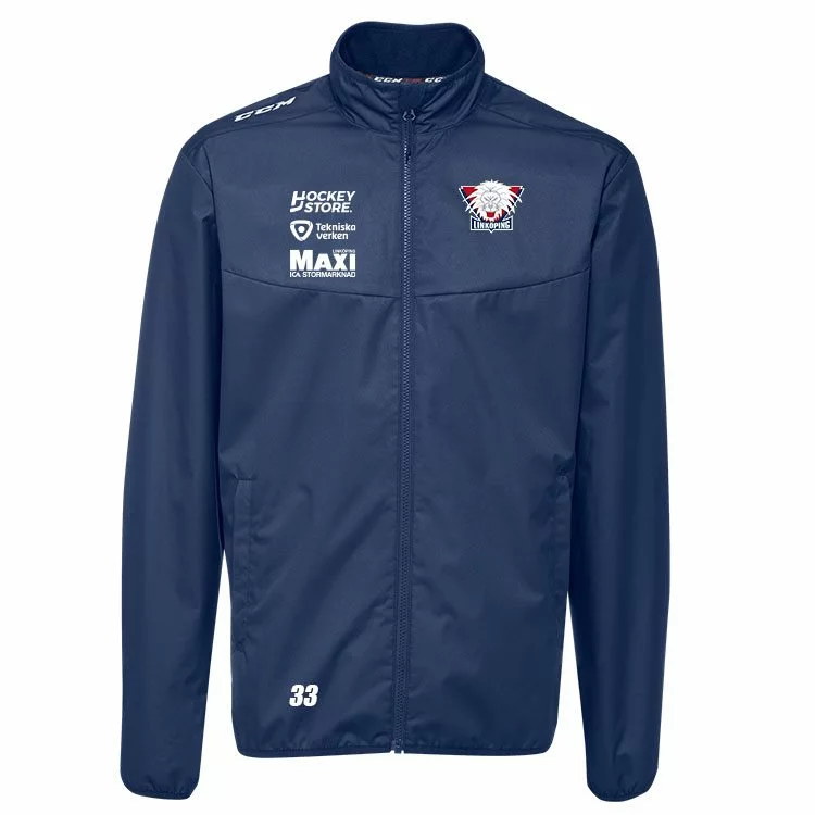 Nya CCM Skate Suit jackan är en tunnare jacka perfekt för att ha på isen eller innan kylan/vintern slår till. Med en modern design ser den riktigt snygg ut också. Jackan har öppning med heldragkedja, sidofickor med dragkedjor, ventilerat parti på ryggen, innerficka, elastisk resår och mudd vid ärm slut. Skate Suit jackan är tillverkad i material som tillåter rörelse. Kommer med föreningslogga tryckt på vänster bröst, lägg till eget tryck med initialer eller nummer på höger bröst.