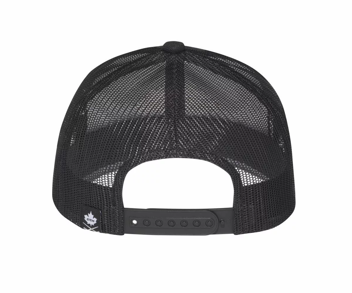Trucker inspirerad CCM keps med snapback för storleksjustering. Broderad läder patch framtill på kepsen.