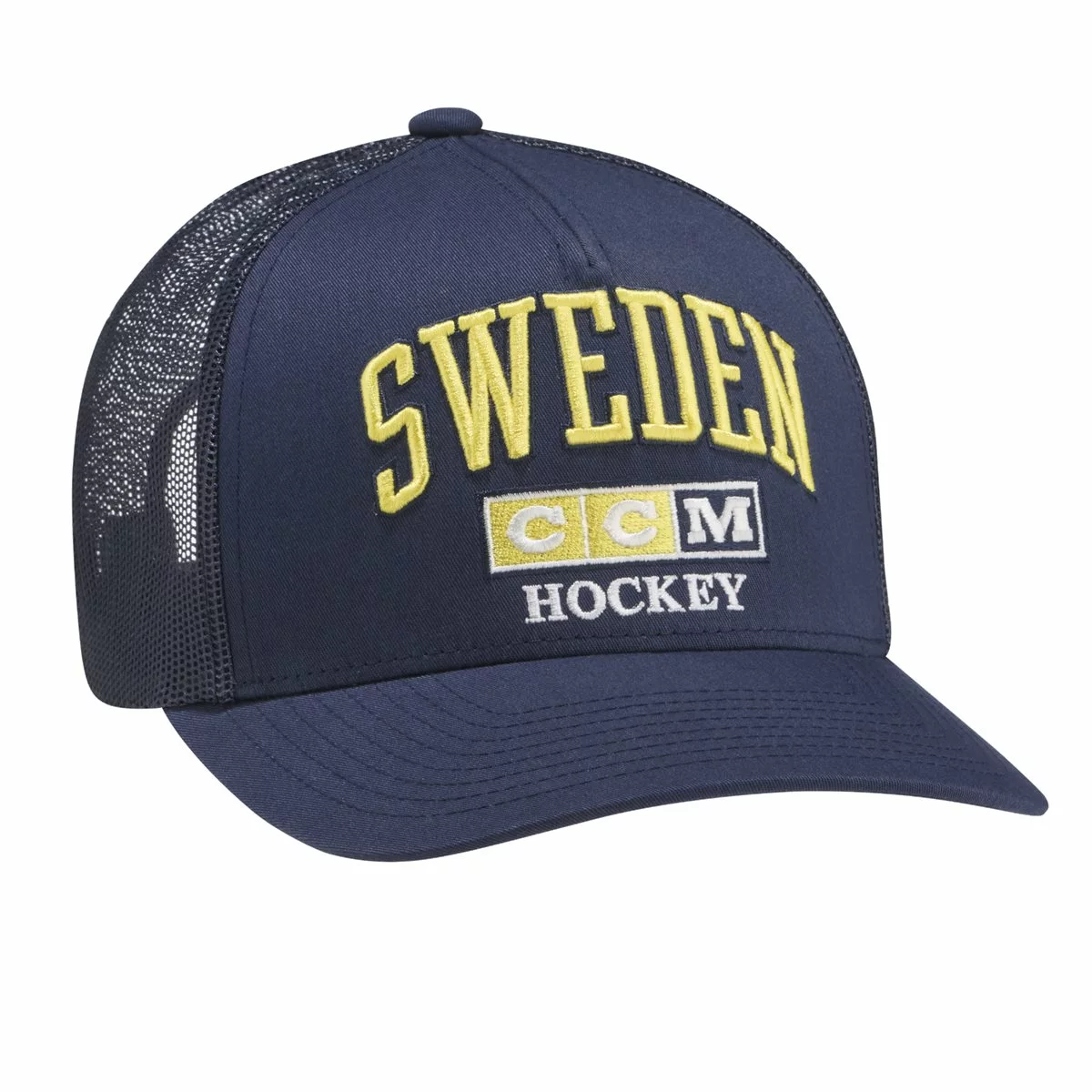 Keps från CCM i klassisk ”Trucker” modell. Sverige inspirerade färger och CCM-logga i retrodesign. Plastspänne bak för storleksjustering.