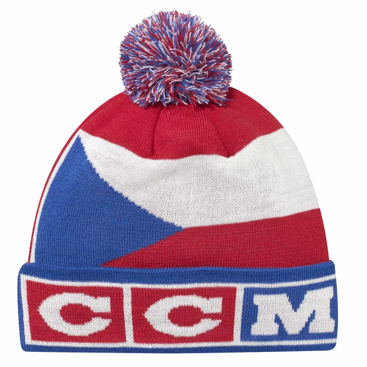 Stickad mössa med toffs ifrån CCM, med Tjeckien inspirerad design.