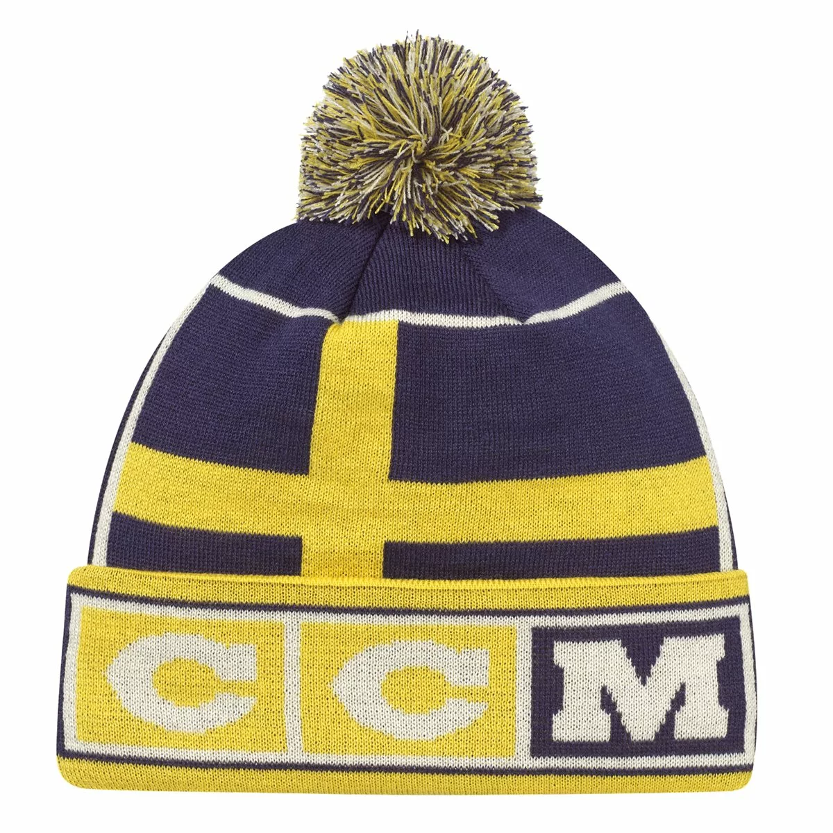 Stickad mössa med toffs ifrån CCM, med Sverige inspirerad design.