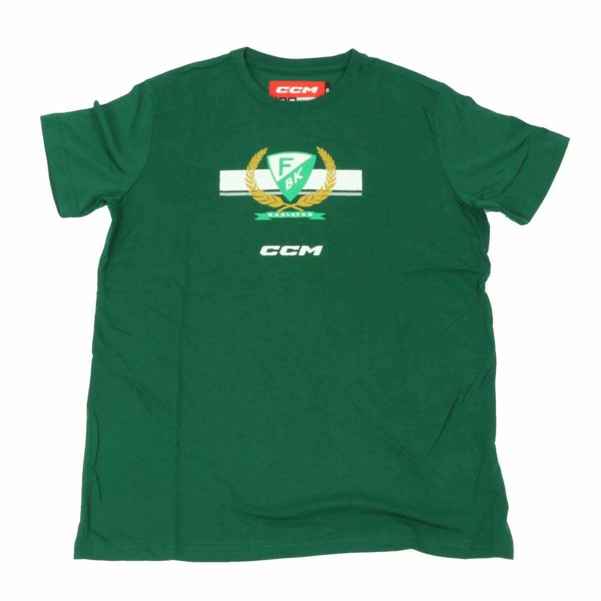 T-Shirt från CCM i bomullsmaterial. Klubbens gröna färger med tryckt Färjestad BK emblem på bröstet.