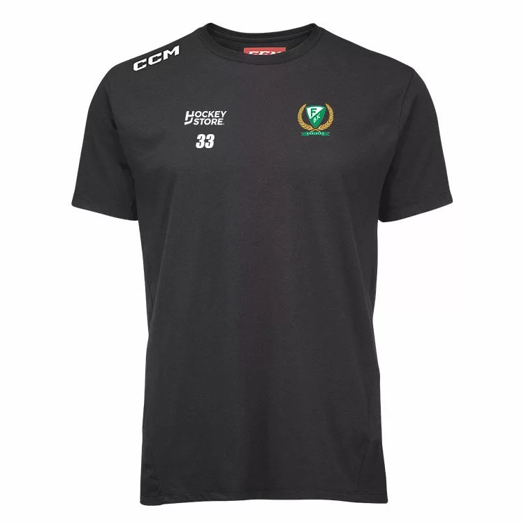 Här möts stil och komfort i en mjuk T-shirt tillverkad i lättviktsmaterial som passar perfekt till alla aktiviteter. CCM-logga tryckt höger axel. T-shirten finns i färgerna svart, navy och röd. Kommer med föreningslogga på vänster bröst, lägg till eget tryck med initialer eller namn på höger bröst.