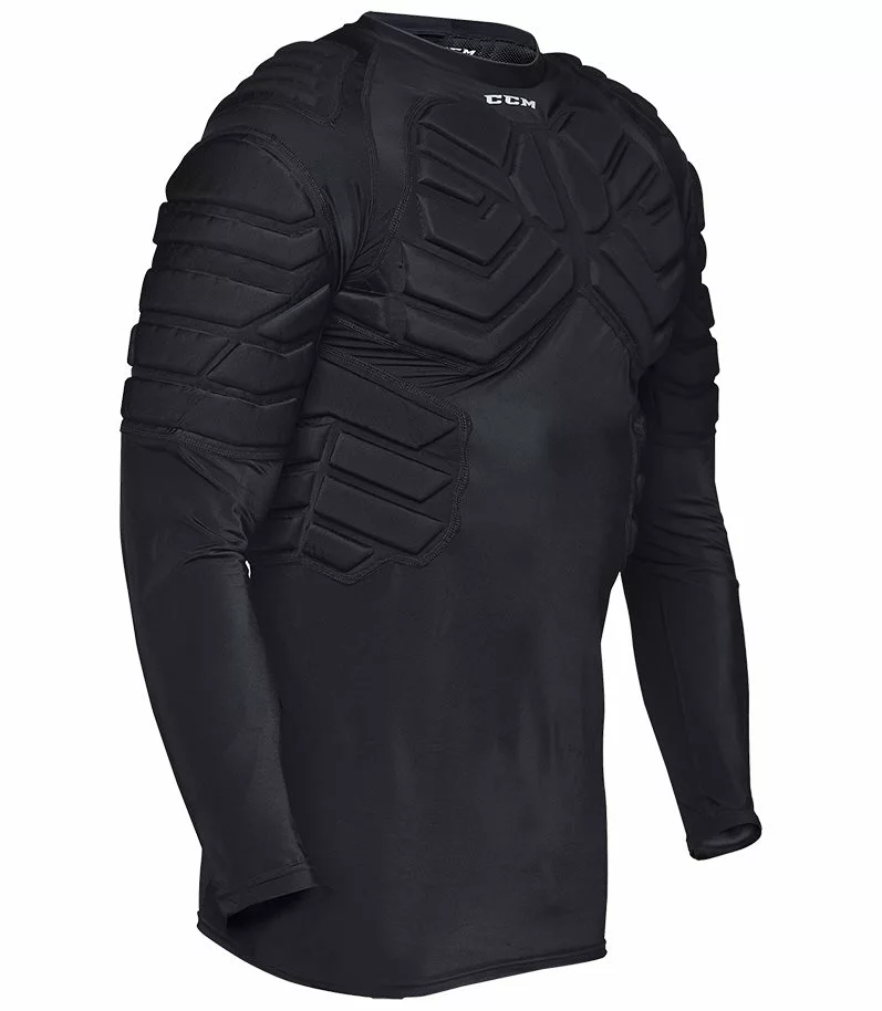 CCM Padded Goalie L/S är en långärmad underställströja med gedigen vaddering på utsatta zoner som lämpar sig utmärkt för målvakter. Skydden är framförallt placerade över bröst, armar och axlar. För bästa komfort är tröjan tillverkad i ventilerande material med god fukttransport och rörelsefrihet.