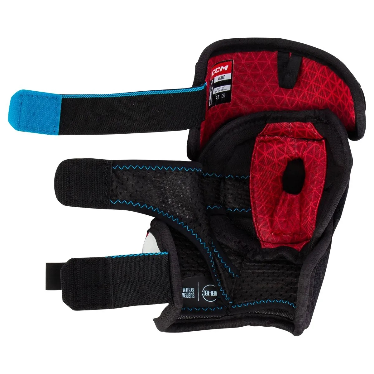 Den största förändringen för FT6 armbågsskydd jämfört med tidigare modeller är det helt nya termoregleringssystemet Aer-Tec. Detta förbättrar luftcirkulationen, svettavdunstning och reglering av kroppsvärmen. Allt detta hjälper till att tillåta kroppens kärntemperatur att svalna snabbare, vilket hjälper spelarna att hålla sig svala och fatta snabbare, bättre beslut när det gäller. Jetspeed FT6 har en flexmotionskonstruktion i tre delar. Denna förbättrade konstruktion följer bättre armbågens naturliga rörelser, vilket möjliggör enklare rörelse vid klubbhantering, passningar och skjutning. Underarmen på elitnivå är konstruerad av kompressgjutet HD-skum som ger högsta skyddsnivå medan Aer-Tec-upphängningssystemet ger ventilation och hjälper luftflödet. Bicepsområdet konstruerades med en flytande bicepsdyna och PE-inlägg. Detta är täckning av hög kaliber runt bicepsområdet och premium sublimerat foder för elitkomfort. Jetspeed FT6 har en gjuten PE-kåpa med JDP-konstruktion och ett exponerat EVA-skumskydd. JDP-kåpan är designad för att sprida slagkraften bort från armbågsleden och EVA-skumskyddet ger ännu mer skydd. CCM inkorporerade också ett nydesignat bandsystem. Detta band har en raffinerad Y-formad mittlåsrem och en nylonunderarmsrem som möjliggör en bättre passform utan att kompromissa med rörelsen.
