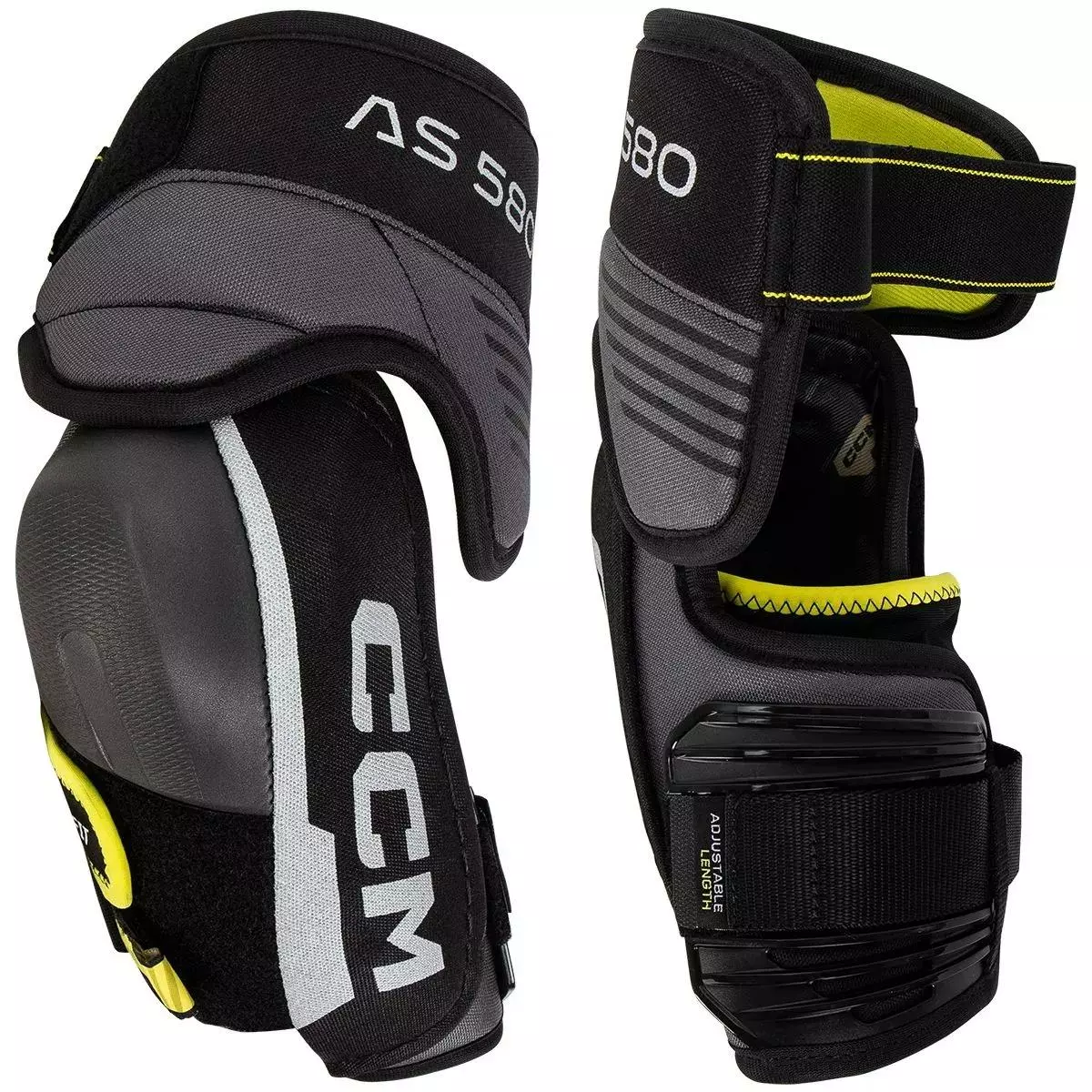 Till konstruktionen av Tacks 580, har CCM en ny anatomisk skölddesign med maximal täckning och en konstruktion i två delar. ASD sätter skyddet i främsta rummet, ger ultrakomfort och en anpassningsbar passform. ASD är konstruerad för att erbjuda en stor täckningsnivå som följer kroppens naturliga form samtidigt som den tillåter maximalt skydd utan att offra rörlighet. På toppen av 580 kommer det att finnas en flytande biceps med ett förstärkt bicepsskydd. Denna bicepskonstruktion erbjuder skydd och komfort av hög kaliber. Strax under bicepsskyddet sitter JDP-armbågskåpan med ett gjutet EVA-skumskydd. Denna armbågskåpa på elitnivå är designad för att sprida slagkraften bort från armbågen. Tacks 580 inkluderar ett snedstrecksköld med ett sublimerat foder. Detta formsprutade underarmsskydd erbjuder förstklassigt skydd och komfortkänsla. En längdjusterbar underarmsrem ger dig en bekväm och helt anpassningsbar passform. Att kunna justera längden på remmen ger en åtsittande passform utan att armbågsskyddet glider.