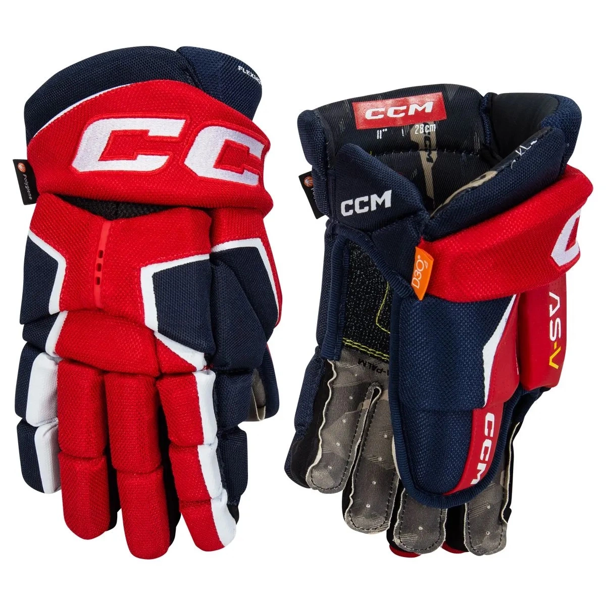 Konstruktionen har en ny anatomisk skölddesign med maximal täckning. ASD sätter skyddet i främsta rummet, ger ultrakomfort och en anpassningsbar passform. ASD är konstruerad för att erbjuda skydd av högsta kvalitet. Tillsammans med proffsgodkänd polyester och PU-läder har dessa handskar en mycket mobil och rymlig design tillsammans med fantastisk teknik för att hålla händerna bekväma och redo för spel. En segmenterad Flexmotion öppen manschett användes på Tacks AS-V. Denna kortare öppna anatomiska manschett ger större rörelsefrihet samtidigt som du håller dig skyddad. Detta är tillsammans med ett sublimerat foder inuti manschetten som är ett överlägset foder som håller dina händer mycket bekväma. Fingrarna på Tacks AS-V erbjuder skydd på elitnivå med konstruktion som möjliggör optimal rörelsefrihet, fingerfärdighet och hållbarhet. Detta uppnås med dubbla lager högdensitets EVA-skum med PE-plastinsatser. Handskarnas pekfingrar kommer att erbjuda en 3-delad konstruktion för optimerad rörelse och kontroll och tummen använder Pro-Flex teknologin, som är en tvådelad konstruktion, vilket ytterligare förbättrar spelarens grepp och känsla! Tacks AS-V har CCMs luktkransbehandlade Dura-Palm Pro sublimerade AX-mocka. Denna proffsiga handflata i Axe-mocka är Kevlar-förstärkt och har antibakteriella polygiene- och luktbekämpande egenskaper för att hålla dina händer fräscha. Denna handflata ger extra hållbarhet för att skydda mot slitage som orsakas av din hockeyklubba. Baksidan av Tacks AS-V har slagskydd på elitnivå med D30 och ventilerad basteknik. Detta gör att handskarna har avancerad andningsförmåga och luftflöde genomgående, vilket hjälper dina händer att hålla sig svala och torra samtidigt som de förblir skyddade och har en elegant proffsinspirerad look. Till interiören har Tacks AS-V CCMs polygiene- och luktknäcksbehandlade antimikrobiella liner. Detta ger inte bara spelarna en mjuk och bekväm känsla, det fungerar också för att bekämpa luktframkallande bakterier och håller dina handskar fräscha längre.
