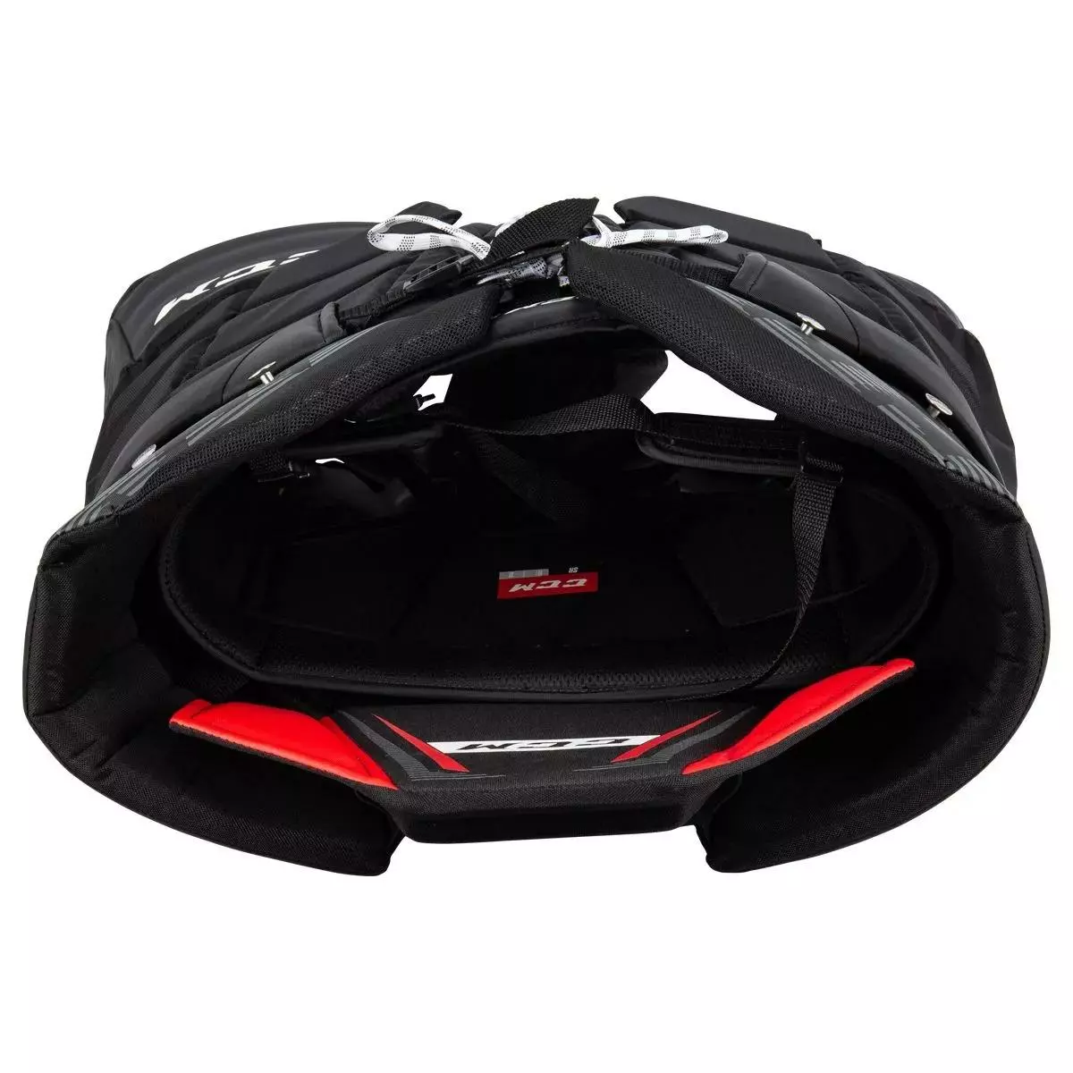 CCM 1.9 har snygga logotyper högst upp på höfterna, med en liten logotyp på vänster lår fram. Detta ger byxan ett proffsigt utseende. Under hela byxan finner du strategiska stretchzoner som gör att målvakten med rörlighet kan göra alla räddningar som behövs. CCM 1.9 har nya Fit+ innerbältessystem. Andra modeller har haft detta tidigare, men det finns nya uppdateringar av bältet för att få det att sitta bättre på kroppen. Det inre bältet kommer att ha mer vaddering tillsammans med bättre stängningar, så det känns mer bekvämt på kroppen. Även om detta inre bälte inte är lagligt från NHL, ger det otrolig komfort och justerbarhet för dagens målvakt. På höfterna har CCM 1.9 Flexmotion-design med segmenterade PE-skum för ultimat flexibilitet. På benen på byxan har låret formgjuten plast med PE-skum för att skydda mot hårda skott. Byxans ben är inte avrundade helt, men har en fin kurva så att de passar fint när målvakten går ner i Butterfly. I hela ryggraden finns det gjutet EVA-skum med segmenterad konstruktion så målvakten är skyddad men också förblir rörlig. Slutligen är CCM 1.9 gjorda av 400D High-nylon med stretchzoner för bra hållbarhet.