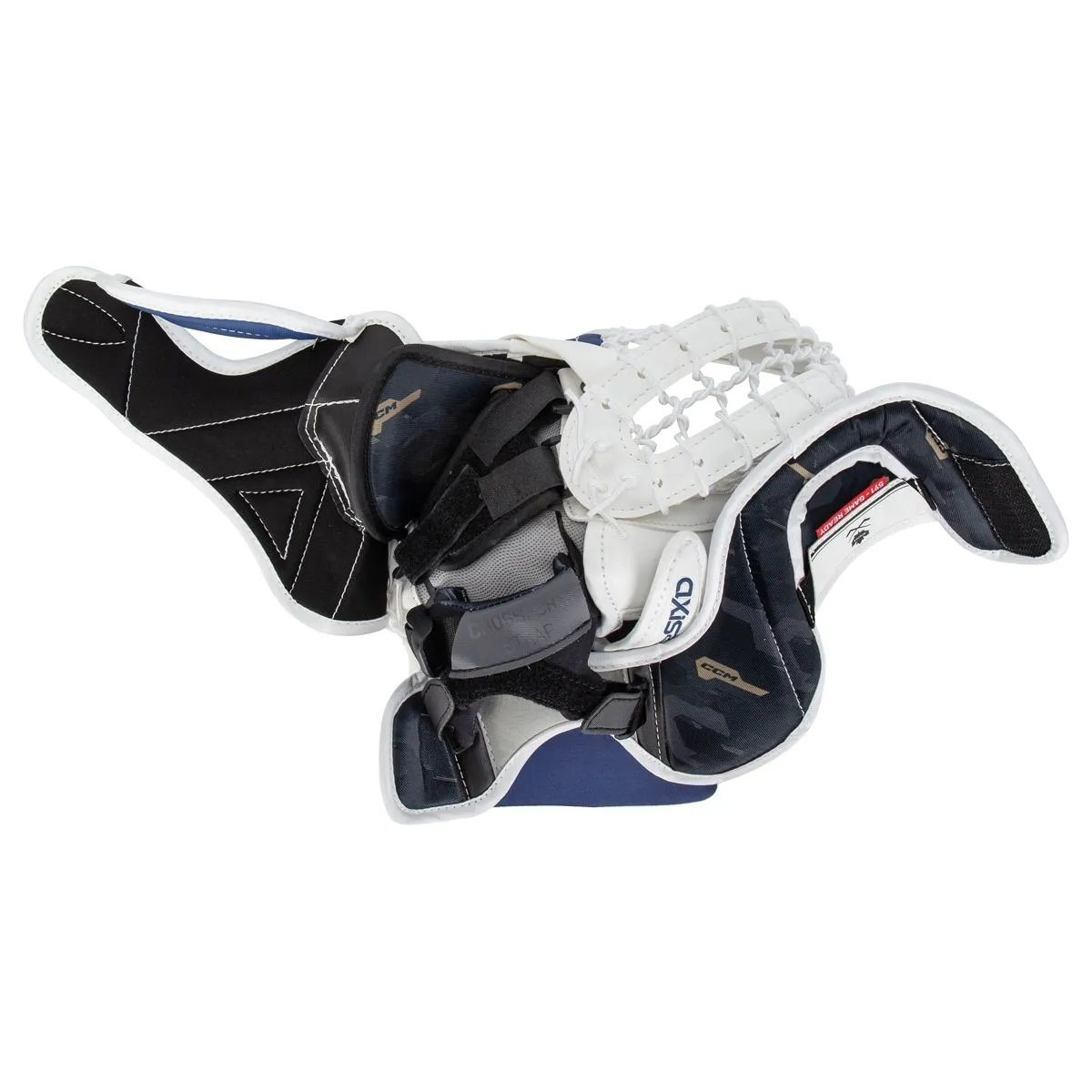 CCM introducerar sin helt nya brytvinkel 591 på Axis A2.5, som är baserad på den mycket populära brytvinkeln på 590 eller 60 grader, men omdesignad för förbättrad stängning och känsla. Tillsammans med en helt ny LITECORE-manschettdesign i ett stycke erbjuder Axis A2.5 en stor blockeringsyta att visa för skytten och möjliggöra en naturlig fångst. I handskens ficka har CCM tagit den enorma framgången från de tidigare modellerna och lagt till Double Straight T på Axis A2.5. Denna ficka gör att målvakten helt kan se in i fickan och ändå ge efter för en mjuk fångst. Vid basen av ryggraden på T:et finns en U-formad design som håller en ren fästpunkt och främjar en enkel inbrytning och en spelklar känsla. Till handskens insida har CCM gjort om passformen på Axis A2.5 helt. Den har nu en Cross Form-rem, som säkrar baksidan av handen via flera fästpunkter. En Suregrip-handflata ger komfort och känsla. Bakhanden och manschetten använder den helt nya FlexMotion2-designen, där manschetten erbjuder strategiska Flex Pints och skydd som möjliggör ett större rörelseomfång, bakhanden har en strategisk Tri-Flex design som erbjuder oöverträffat högt stötskydd.